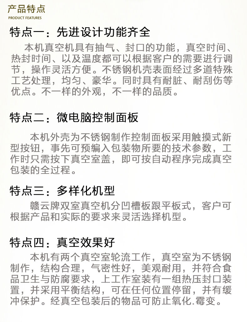贛云牌真空包裝機是一種新穎的包裝機械,它是將包裝袋內(nèi)抽成真空后、立即自動封口,袋內(nèi)真空度高,殘留空氣少,防止了細(xì)菌等微生物的繁殖、避免了物品氧化霉變和腐敗、同時對某些松軟的物品、經(jīng)人包裝后、可縮小包裝體積、便于運輸和貯存。