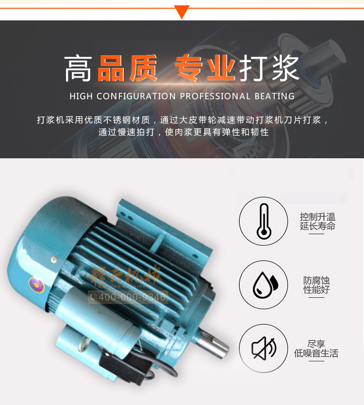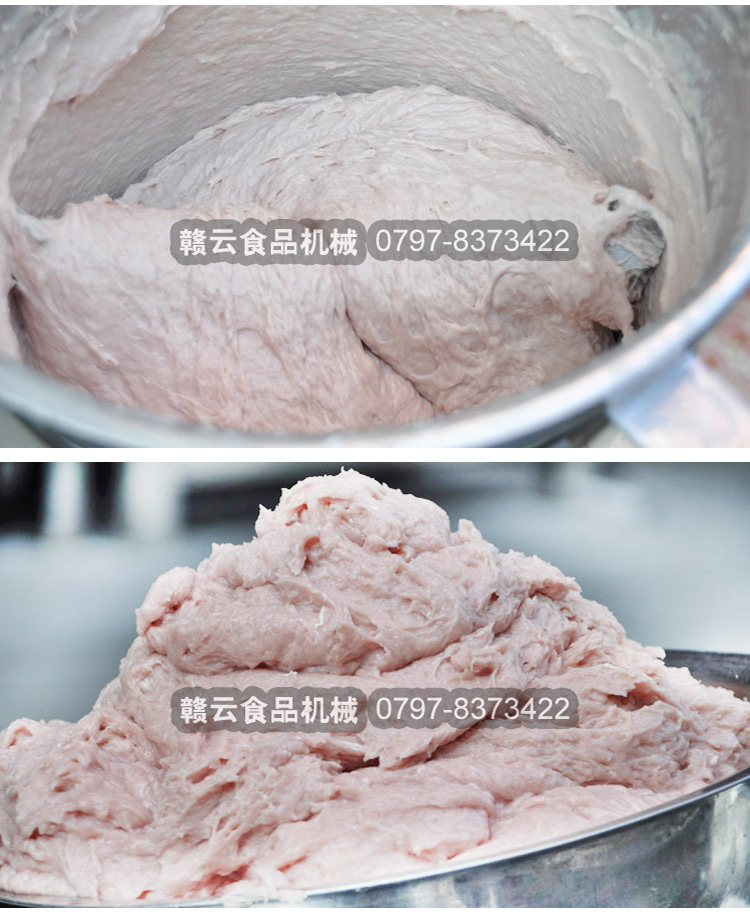 贛云牌全不銹鋼慢速魚丸、肉丸打漿機采用優(yōu)質不銹鋼材質,通過大皮帶輪減速帶動打漿機刀片打漿,通過慢速拍打,使肉漿更具有彈性和韌性。適合魚丸、牛肉丸和貢丸的制漿之用。