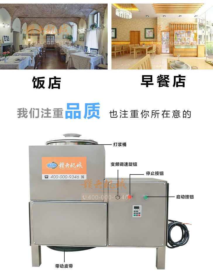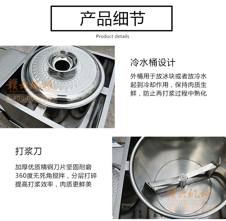贛云牌36型全封閉式慢速變頻肉丸打漿機(jī)選優(yōu)質(zhì)不銹鋼,在全不銹鋼慢速肉丸打漿機(jī)基礎(chǔ)上將整機(jī)外殼用不銹鋼板材封裝,更好的保護(hù)電動(dòng)機(jī),通過(guò)小皮帶輪帶動(dòng)大皮帶輪減速,慢速拍打肉漿。