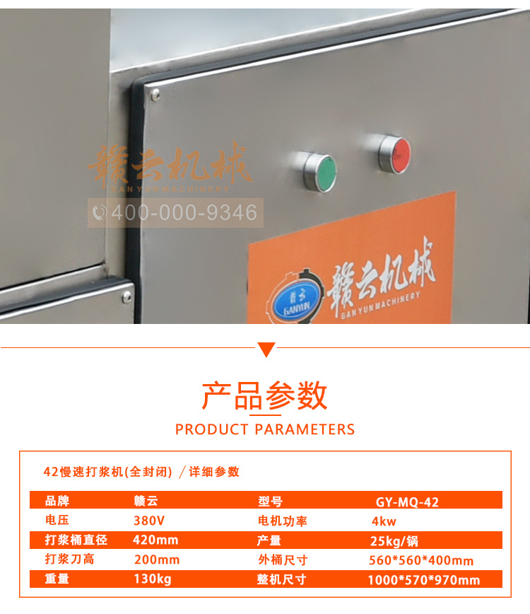 中大型魚丸打漿機(jī)采用全不銹鋼材質(zhì),有效的保護(hù)了電動(dòng)機(jī),操作上更安全,制作魚丸更衛(wèi)生,42型慢速肉丸打漿機(jī)可一次加工50斤左右魚漿,是中型魚丸,牛肉丸加工首先選慢速拍打設(shè)備之一,贛云歷經(jīng)十年品質(zhì),為您加工魚丸,牛肉丸等設(shè)備保駕護(hù)航。