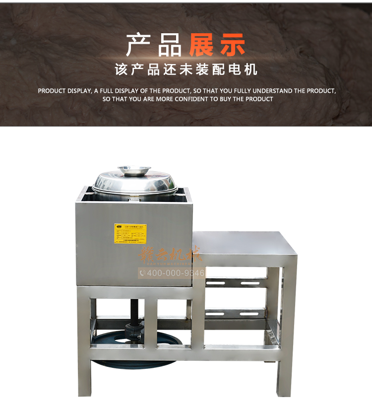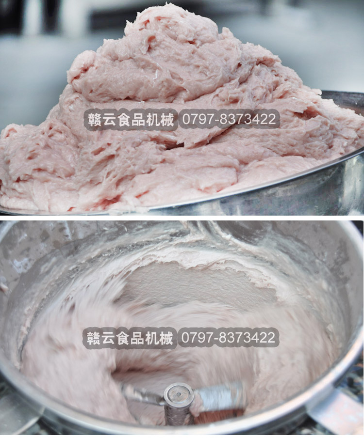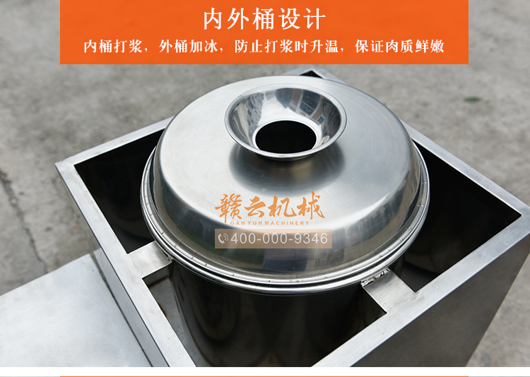 慢速肉丸打漿機(jī)有普通型和全不銹鋼型,本款為全不銹鋼系列32型慢速肉丸打漿機(jī),打漿桶直徑320mm,一次可打肉漿15kg左右。通過大皮帶輪減速拍打肉漿,打出的肉漿更有彈性,適合魚丸、牛肉丸和貢丸的制漿之用。