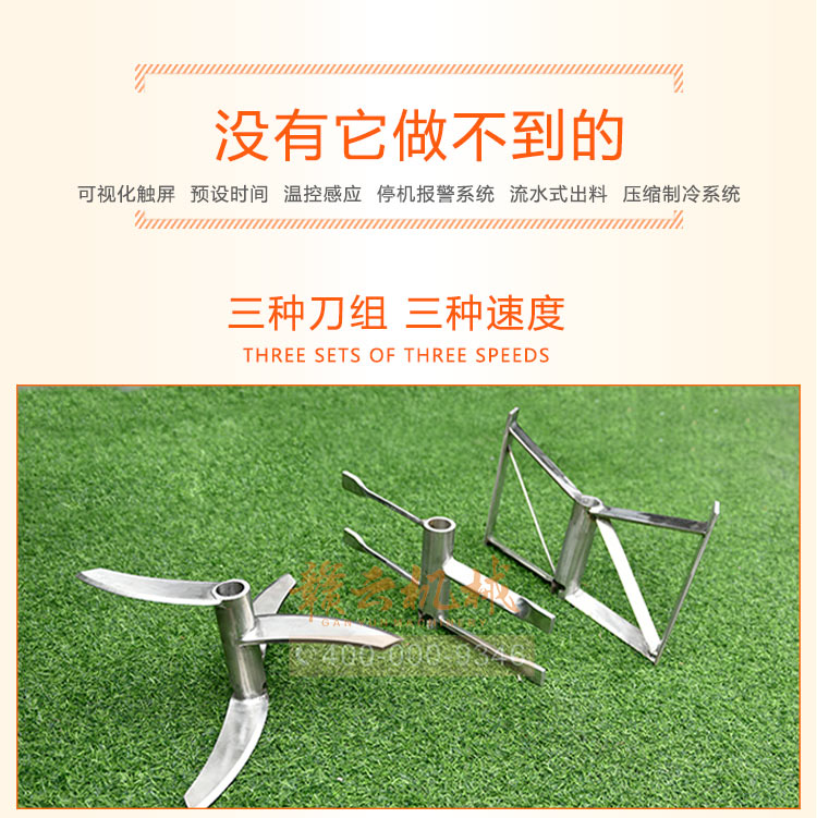 贛云三速制冷打漿機(jī),采用智能操控系統(tǒng) ,根據(jù)原料的不同選擇不同的速度進(jìn)行打漿,三種速度配備三種刀組,分別是高速打漿刀,中速打漿刀和低速打漿刀。三機(jī)合一不僅占地面積小,集可視化觸屏操作、預(yù)設(shè)打漿時(shí)間、溫控感應(yīng)系統(tǒng)、超負(fù)荷停機(jī)報(bào)警系統(tǒng)、流水式搖桿控制出料,并配備強(qiáng)勁的壓縮制冷系統(tǒng),效果好,十分鐘就能達(dá)到理想的制冷效果,更好的保證了肉漿的鮮度。