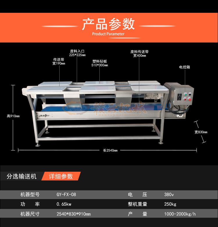 贛云牌FX-08型雙層挑選機(jī),也叫分選機(jī),模擬手工前期挑選工序設(shè)計(jì)二次,操作臺(tái)有上下分選輸送帶,上輸送帶將物料輸出至切菜機(jī)內(nèi)進(jìn)行切割工序,下輸送帶將廢料輸送至另一端收集出來(lái)。亦可根據(jù)客戶需求定制多層分選,定制加長(zhǎng)加寬,以符合中央廚房加工需求之用。咨詢電話400-000-9346