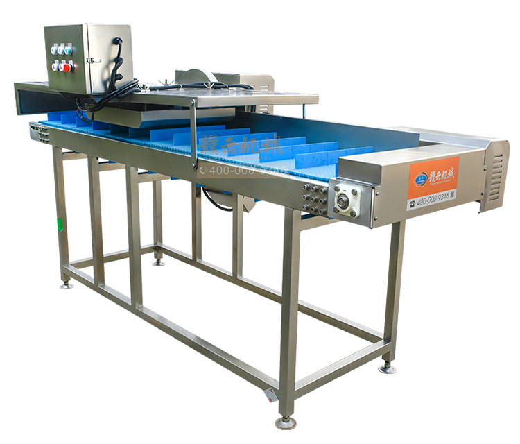平行輸送去根機(jī)由輸送板帶動(dòng)物料前行,蔬菜經(jīng)過(guò)固定位置的刀盤(pán)后,蔬菜根部被切割從廢料口出來(lái),保留的蔬菜則向前輸送。切割的長(zhǎng)度可以調(diào)節(jié),每顆蔬菜所切割出來(lái)的廢料都相等。去根機(jī)適合大型食品加工廠、凈菜生產(chǎn)線等。