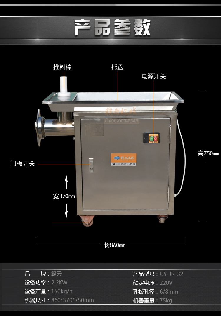 贛云牌32型不銹鋼立式絞肉機,防水開關(guān),二級減速,齒輪鏈條傳動,接觸食品部位全部不銹鋼材質(zhì),配6mm、8mm刀網(wǎng),兩個十字刀,并配實心推料棒!絞肉就是不一樣。