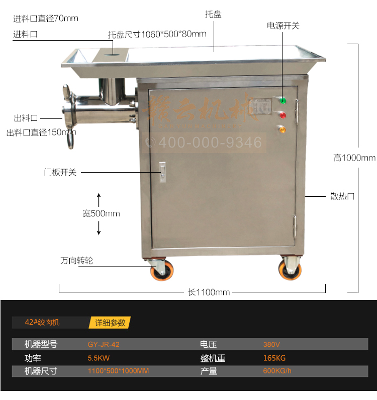 這款立式不銹鋼強(qiáng)力絞肉機(jī),采用5.5kw大功率純銅電機(jī),結(jié)合不銹鋼機(jī)身構(gòu)架,精品絞龍,不銹鋼十字刀和圓刀,符合肉食品加工生產(chǎn)需求,整機(jī)結(jié)構(gòu)緊湊,設(shè)備操作簡(jiǎn)單,安全。