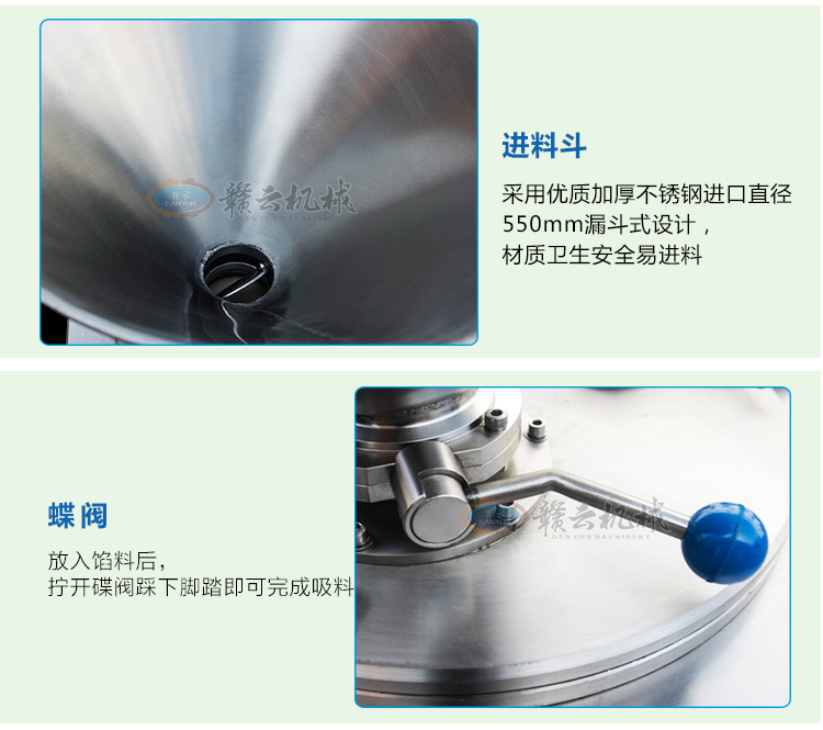 贛云液壓灌腸機,新款灌漿機,雙管灌腸機采用液壓灌漿推料原理設計,密封性能良好,配合雙管灌漿,可自動調節(jié)灌漿,自動吸料,腳踏開關控制操縱自如。是腸類灌腸設備。