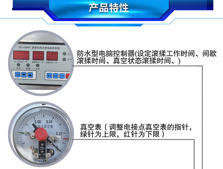 真空滾揉機(jī)可以使肉均勻的吸收腌漬,可以提高肉的結(jié)著力及產(chǎn)品的彈性;可以提高產(chǎn)品的口感及斷面效果;可以增強保水性,增加出品率;可以改善產(chǎn)品的內(nèi)部結(jié)構(gòu),節(jié)能高效。整機(jī)采用不銹鋼制造,結(jié)構(gòu)緊湊,滾筒兩端均采用旋壓式封帽結(jié)構(gòu),大大的增加滾筒內(nèi)的摔打空間,使?jié)L揉產(chǎn)品的效果均勻,噪音小,性能可靠,操作簡便,使用效率更高。