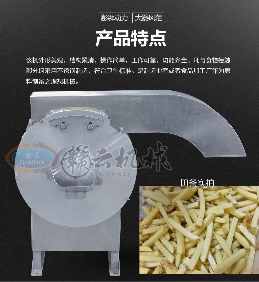 產(chǎn)品簡介:GY-ST-502切薯?xiàng)l薯片機(jī)主要用于將塊莖類的果蔬切成片狀或是條狀,刀片采用優(yōu)質(zhì)不銹鋼材料制造,鋒利無比,使切削出來的薯?xiàng)l薯片表面光滑。本機(jī)操作簡單,效率高,便于清潔。機(jī)器外部全部采用不銹鋼與鋁合金制造,所有與食物接觸的零部件均采用不銹鋼和鋁合金材料制作,主要用于薯?xiàng)l加工、酒店、餐飲店和相關(guān)的食品加工行業(yè)。