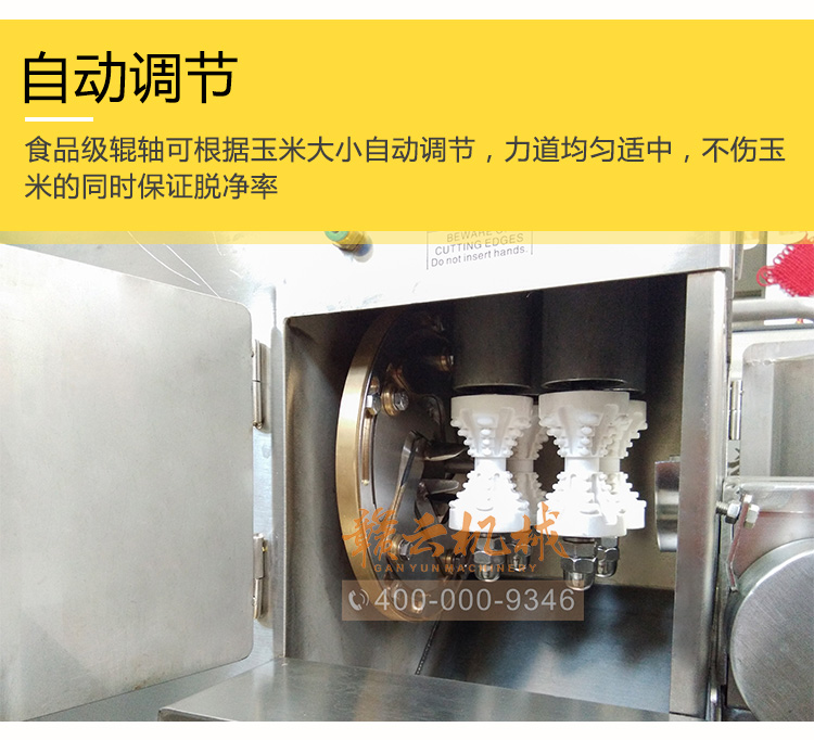脫凈率高——可根據(jù)玉米棒大小自動(dòng)調(diào)節(jié),適合各種大小玉米的脫粒,脫粒深淺可調(diào),甜玉米剝凈率可達(dá)100%。
