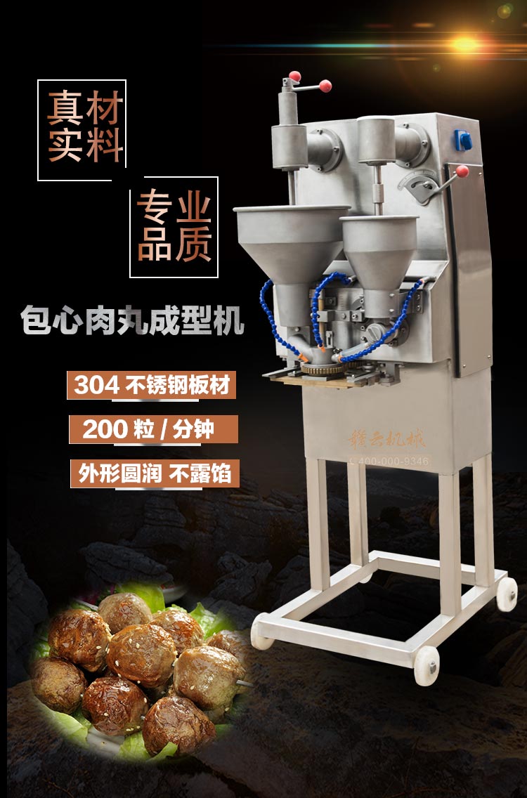 2014冬季新款包心肉丸機(jī),第三代肉丸包心機(jī)保留了二代包心機(jī)的全部?jī)?yōu)勢(shì)外,在包心成型速度上做了本質(zhì)上的突破,每分鐘成型200粒的速度是二代包心機(jī)的兩倍,機(jī)身表面接觸食物部位升級(jí),特殊處理更耐氧化和腐蝕,由于速度上的重大突破,因而稱之為第三代包心肉丸機(jī)。