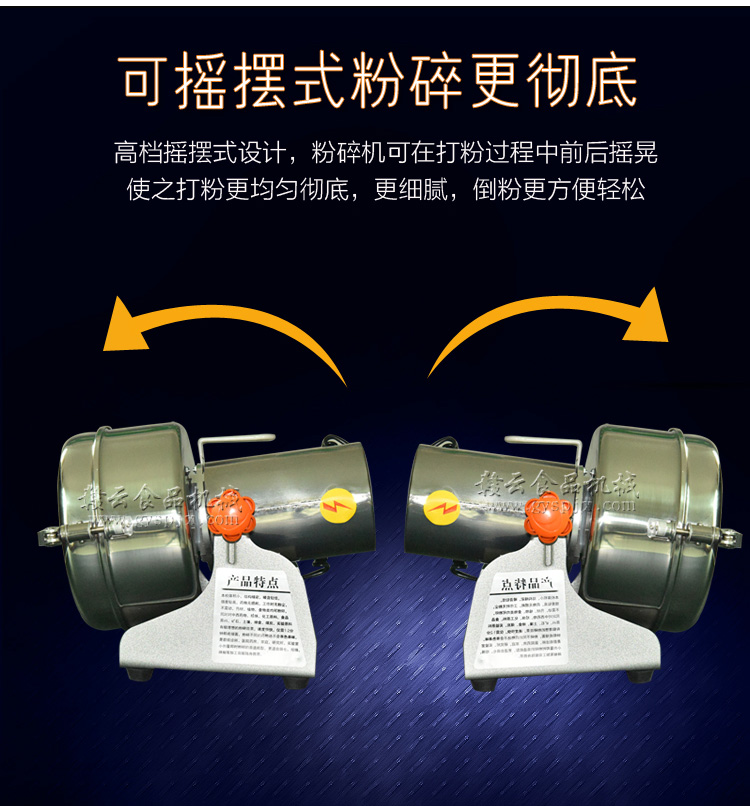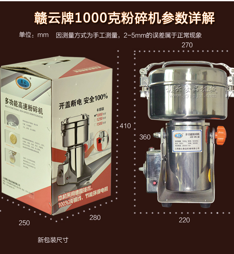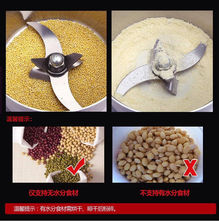 贛云系列中藥五谷粉碎機又稱打粉機,采用超高速純銅電動機帶動粉碎刀快速將物料打成粉碎狀,固又稱之為高速粉碎機,打粉機,我廠生產(chǎn)的多功能粉碎機可容納100克-2500克不等產(chǎn)品。這是一款1000克快速開蓋式粉碎機。