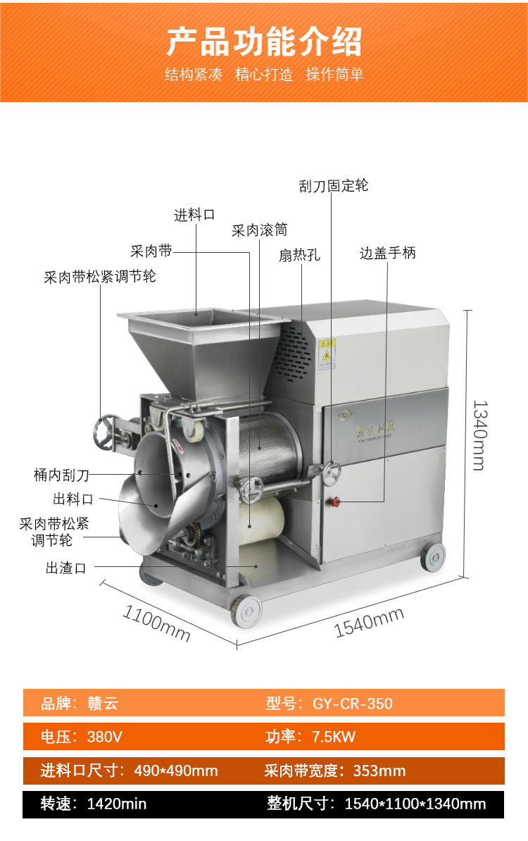 水產(chǎn)加工設(shè)備->魚肉加工設(shè)備->350型魚肉采肉機(jī)(工業(yè)型) | |||||||