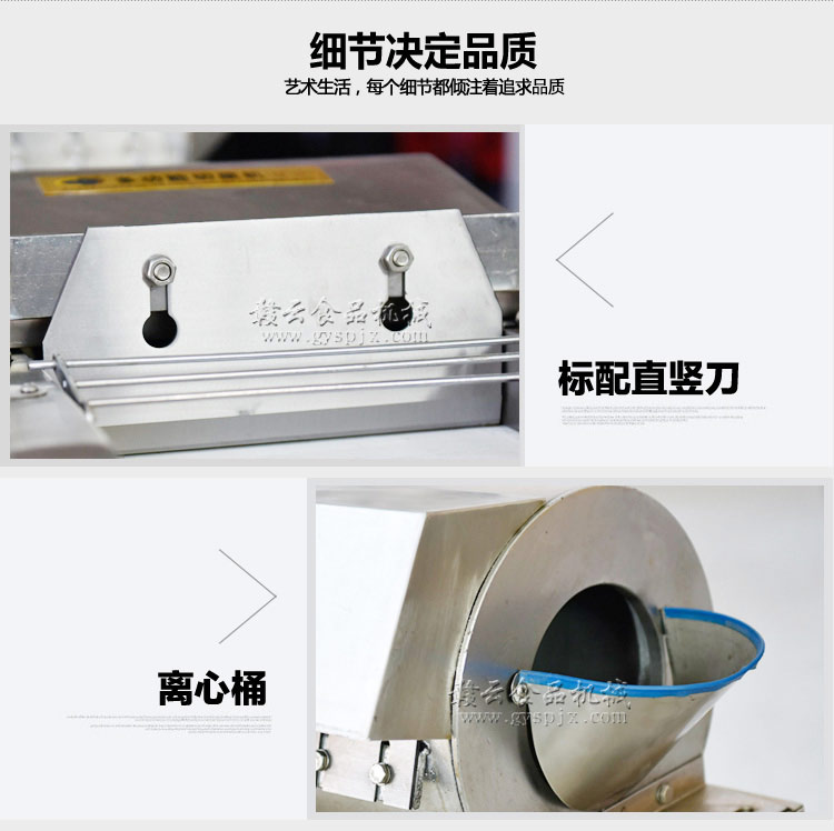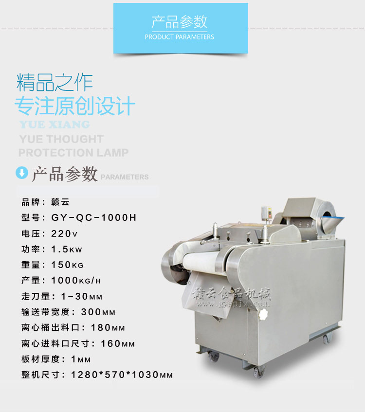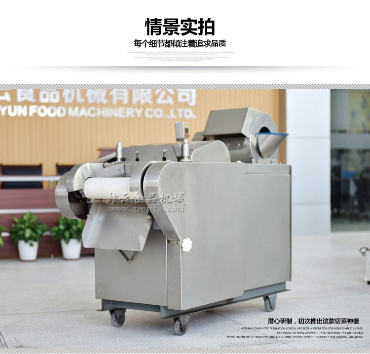 商用切菜機-贛云1000型加厚商用多功能切菜機,采用物料離心力設(shè)計配合手工模擬切菜原理,實現(xiàn)一次切絲,亦可跳過離心機構(gòu),直接采用模擬手工切菜原理切片、絲、丁、條等。還適用于靈芝、阿膠、年糕、米果等食品類和藥品類企業(yè)的加工。