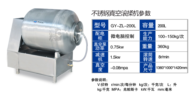 肉制品前處理->斬拌滾揉設(shè)備->200升真空滾揉機 | |||||||