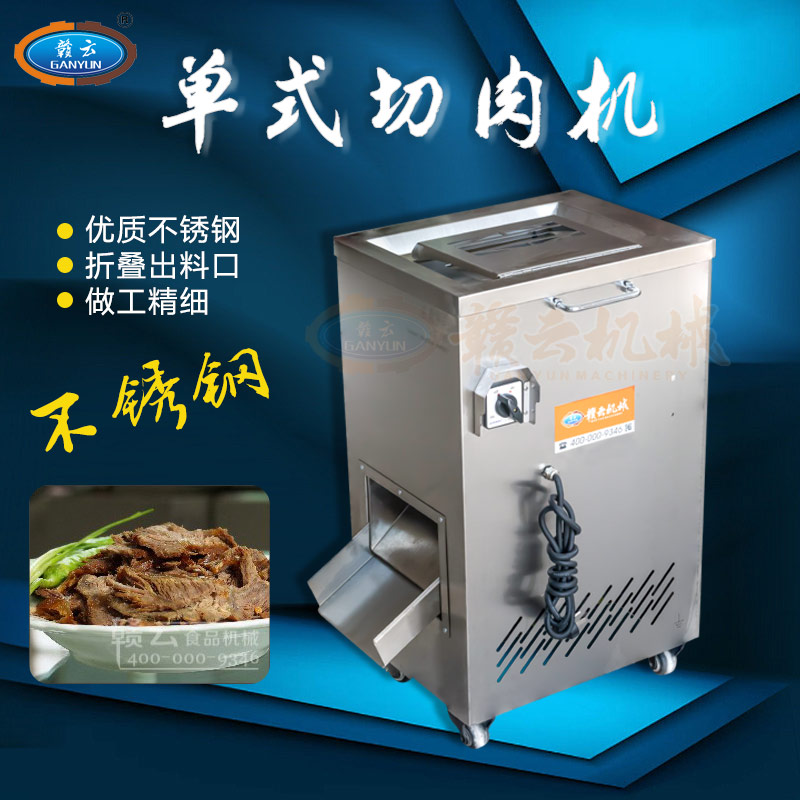不銹鋼切肉機不銹鋼切肉機,進料口鏤空設(shè)計,方便看到下料進度,進料口防護蓋板材加厚,堅固耐用。鋒利刀片,刀間距3.5mm,切切肉片、肉絲、肉粒。防水旋鈕開關(guān)。折疊出料口,節(jié)省空間,推回可防止料斗刮壞。側(cè)板拆卸可看到電機。304不銹鋼機身,兩個萬向輪,兩個非萬向輪,容易固定,省心。