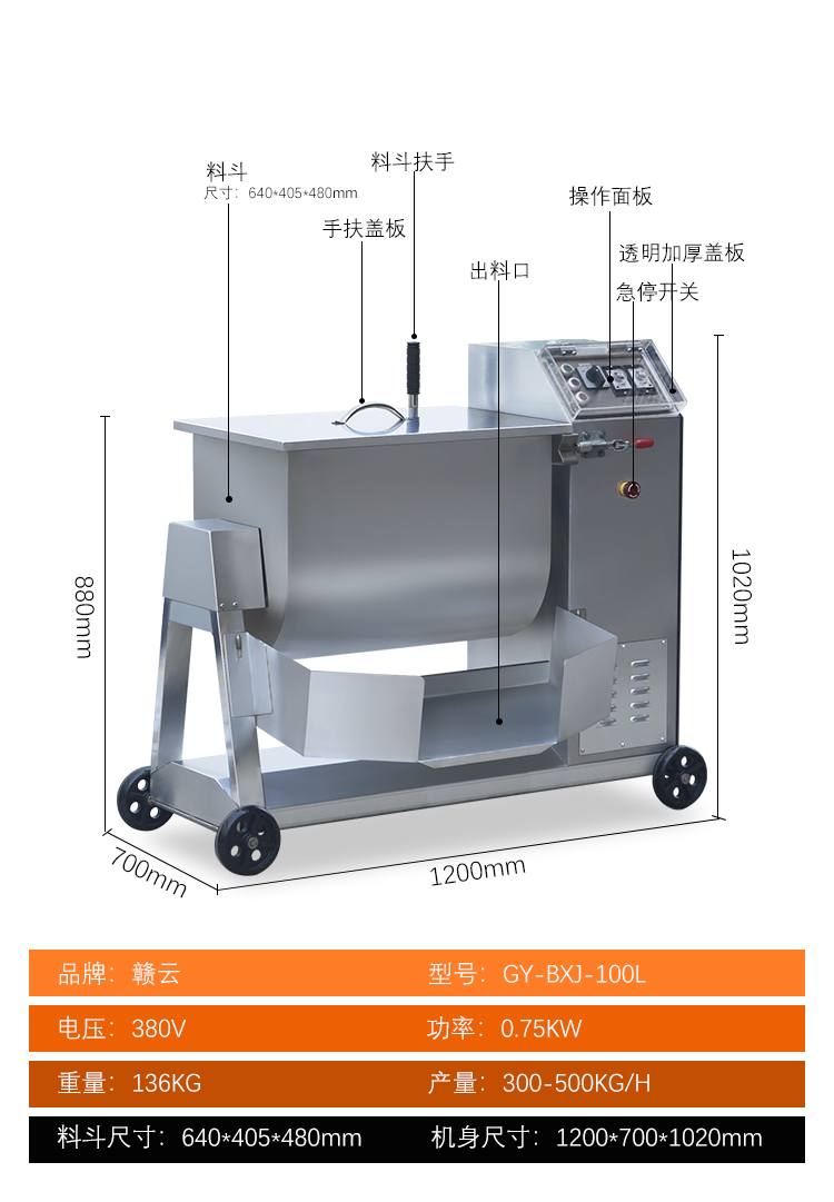 肉制品前處理->斬拌滾揉設(shè)備->100L不銹鋼拌料機(jī) | |||||||