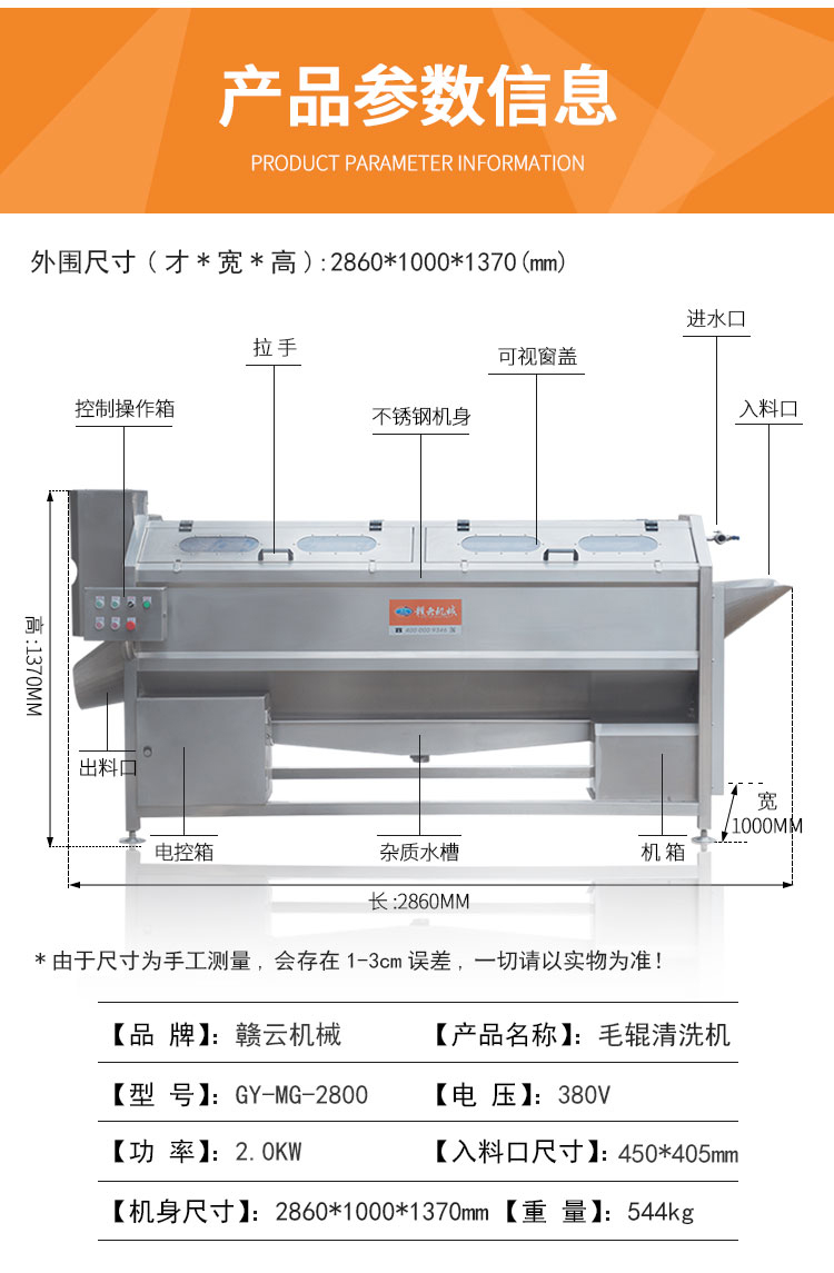 果蔬加工機(jī)械->去皮清洗設(shè)備->2800型螺旋毛滾清洗機(jī) | |||||||