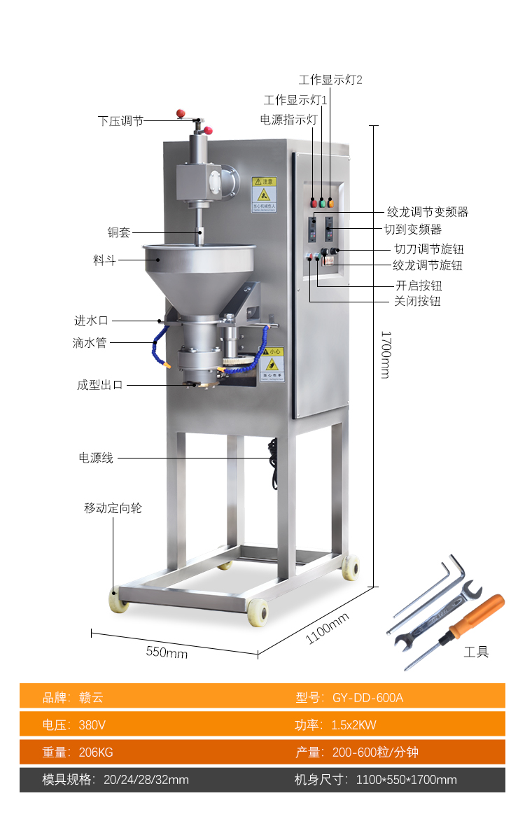 主頁-> 肉丸成型機械->實心肉丸機->單刀高速變頻成型機