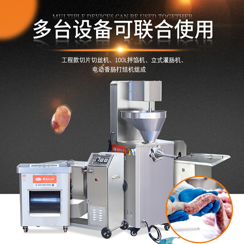 贛云牌立式全自動灌腸機(jī),根據(jù)多次的機(jī)器實地使用和存在不足之處反復(fù)改造后的全新配置升級,采用不銹鋼機(jī)身,機(jī)頭使用可拆卸,方便機(jī)器清洗,速度平衡穩(wěn)定,不銹鋼機(jī)身,腳踏控制灌腸,大功率電機(jī),無論是四川香腸、湖南臘腸、脆皮腸、山東香腸、廣式臘腸還是河南臘腸都適用,一機(jī)多用,設(shè)備滿足多重風(fēng)味香腸制作,新升級的機(jī)器加寬加大入料口,讓您進(jìn)料順暢不卡料,灌腸機(jī)可以與多臺設(shè)備聯(lián)合使用,可與切片切絲機(jī),拌餡機(jī),灌腸機(jī),香腸打結(jié)機(jī)組成,提高您的生產(chǎn)效率。