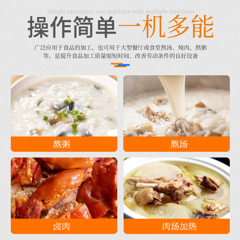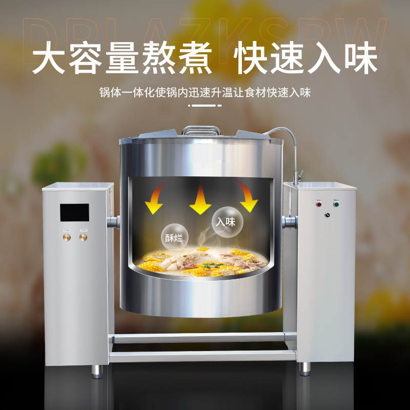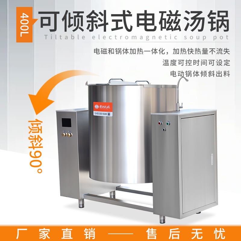 大容量可傾斜式電磁湯鍋,使用不銹鋼材質(zhì),鍋體多重聚能環(huán)使鍋體受熱均勻,熱能快速轉(zhuǎn)化并且受熱后不易冷卻,湯鍋采用可搖擺設(shè)計(jì),方便清洗和出料,并且擁有400L大容量設(shè)計(jì),每一次熬湯、熬粥、鹵肉、食品加熱更大量,此款商用湯鍋廣泛用于中央廚房,預(yù)制菜加工、酒店、食堂等場所