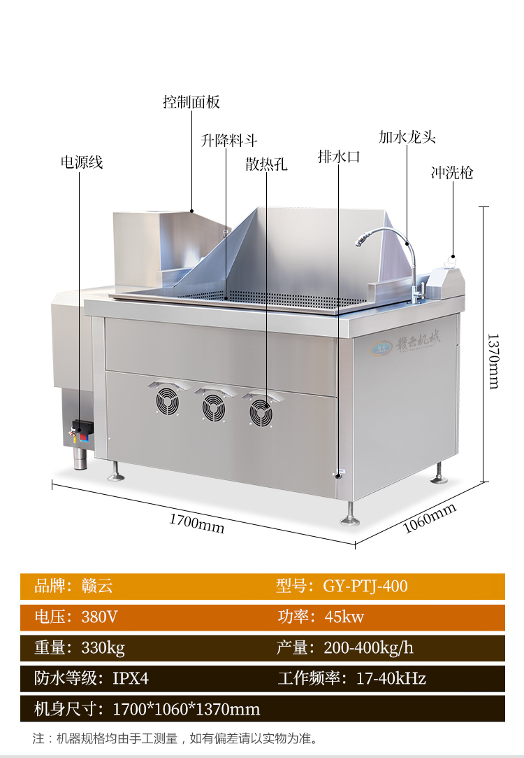 中央廚房設(shè)備->熱調(diào)理區(qū)設(shè)備->400L方形自動漂燙機(jī)/焯水/油炸機(jī) | |||||||