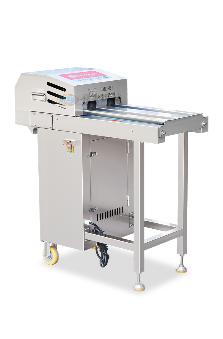 贛云雙路連續(xù)式分半機(jī),機(jī)器采用不銹鋼材質(zhì),輸送帶雙通道設(shè)計(jì),機(jī)器擁有自動(dòng)定位物料對(duì)中夾持功能,防止物料跑偏,切出來的物料兩半均勻,效果好。 機(jī)器采用人性化設(shè)計(jì),無論是入料和操作面板,無需要經(jīng)驗(yàn)都能輕松駕馭。機(jī)器適用于雞爪、鴨頭、鵝頭、海參、魷魚頭、胡蘿卜、豬喉等對(duì)稱分半加工,切割效率高,分半均勻,切面平整效果好。需要了解鴨頭切兩半設(shè)備、連續(xù)式劈半鴨頭雞頭機(jī)、微凍鴨頭鹵鴨頭切半的機(jī)器、雞頭鵝頭切半機(jī)、連續(xù)雞爪子切半機(jī)機(jī)器、檸檬風(fēng)爪加工設(shè)備等,可以聯(lián)系贛云機(jī)械。