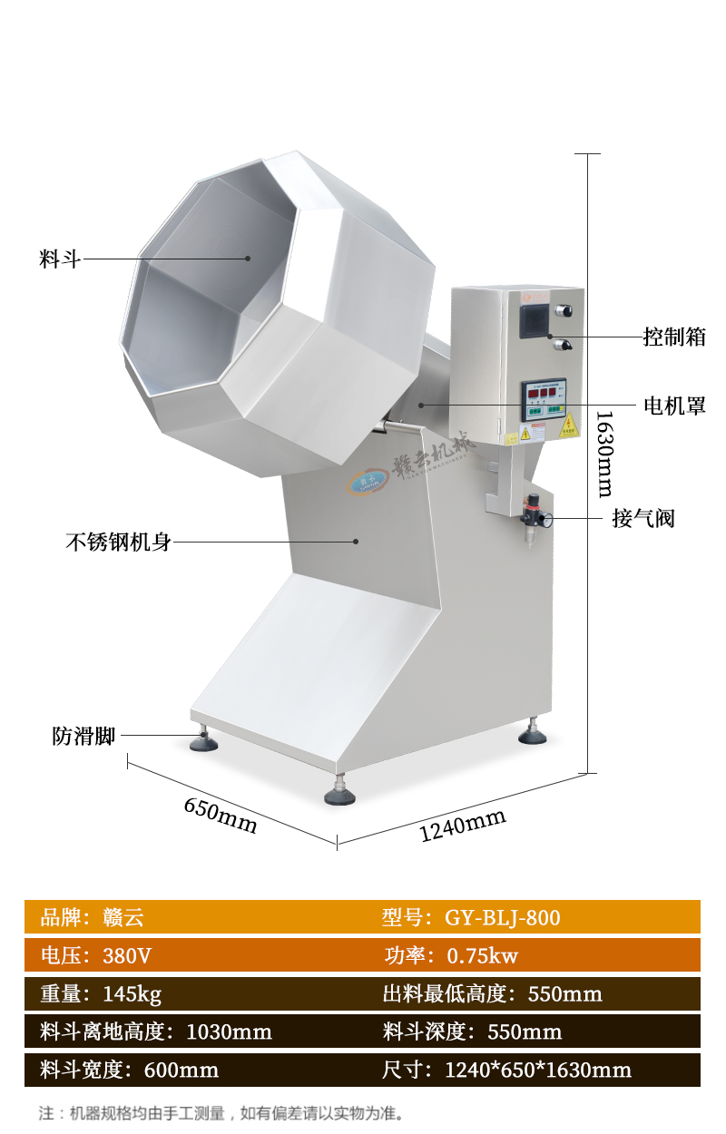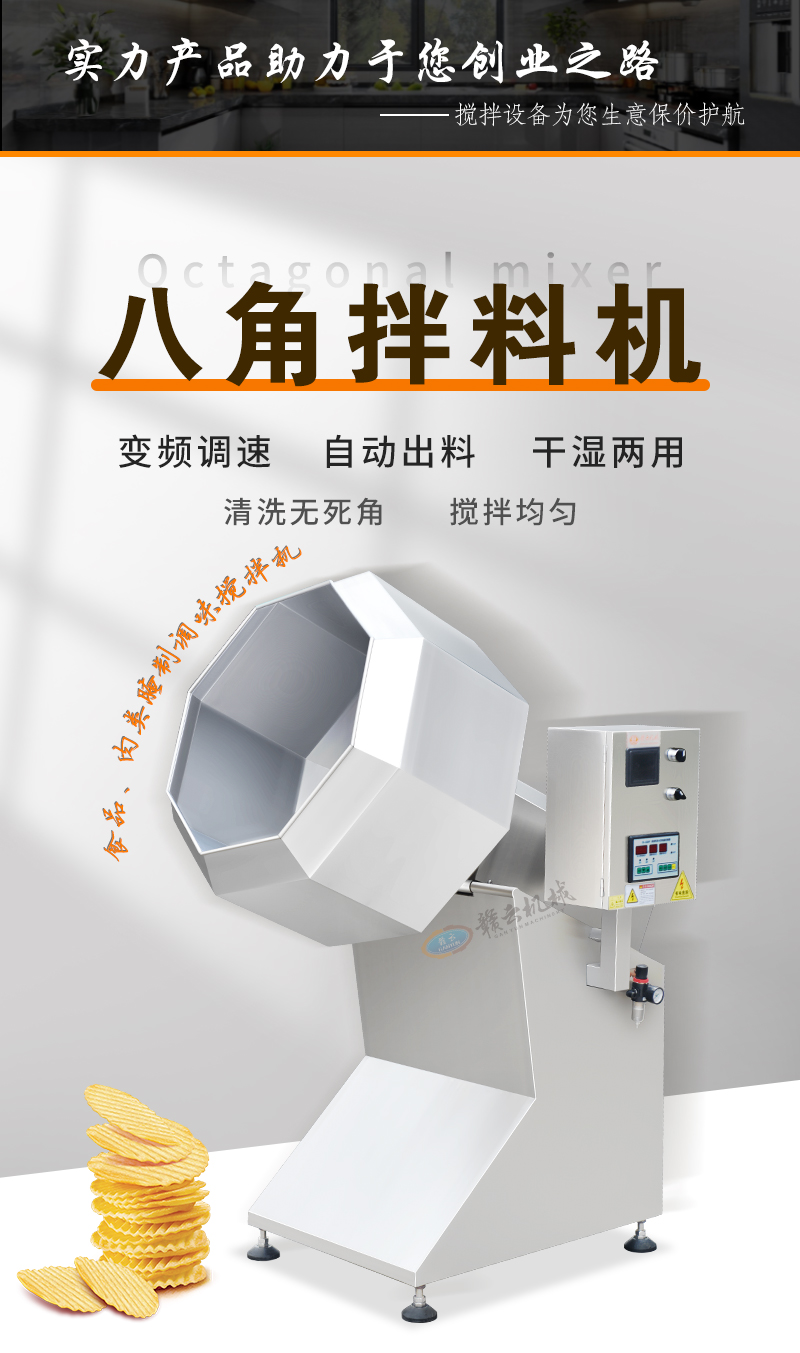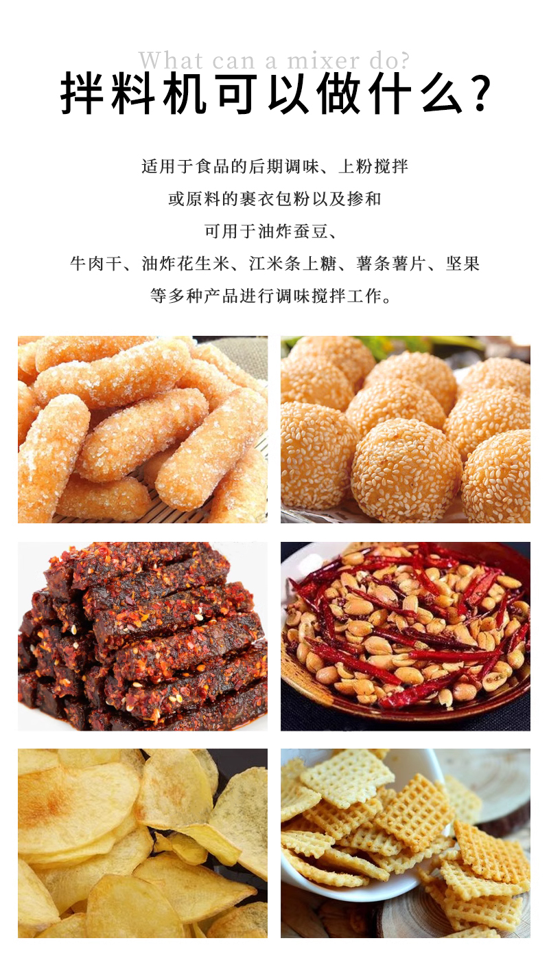 適用于堅果、蠶豆、牛肉干、薯片、花生、月亮巴、鍋巴等食品的快速均勻上料調味。