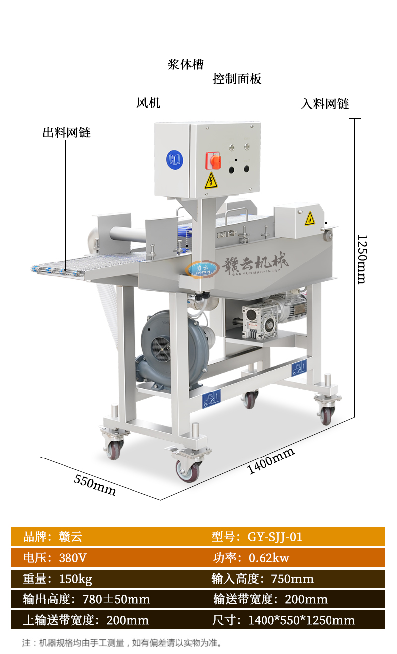 肉丸成型機(jī)械->其它肉制品成型設(shè)備->裹粉上糠一體機(jī) | |||||||