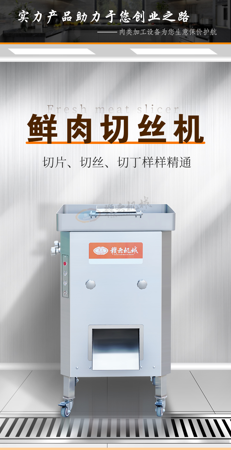 用于鮮肉的快速切割加工,高效切肉絲切丁,適用餐館、食堂、中央廚房等