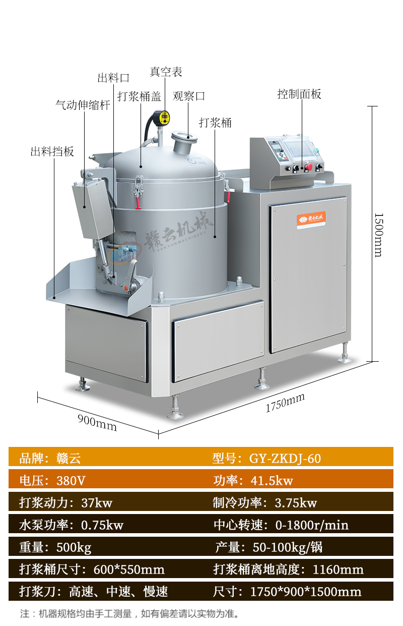 主頁-> 肉丸打漿機械->調(diào)速打漿機->真空三速制冷打漿機