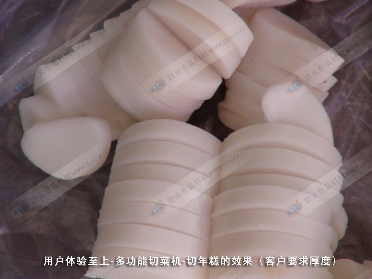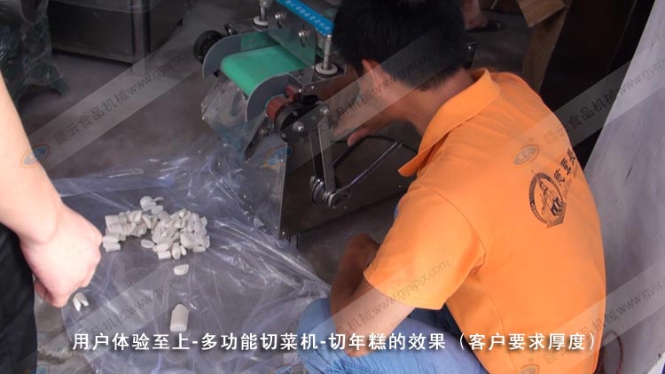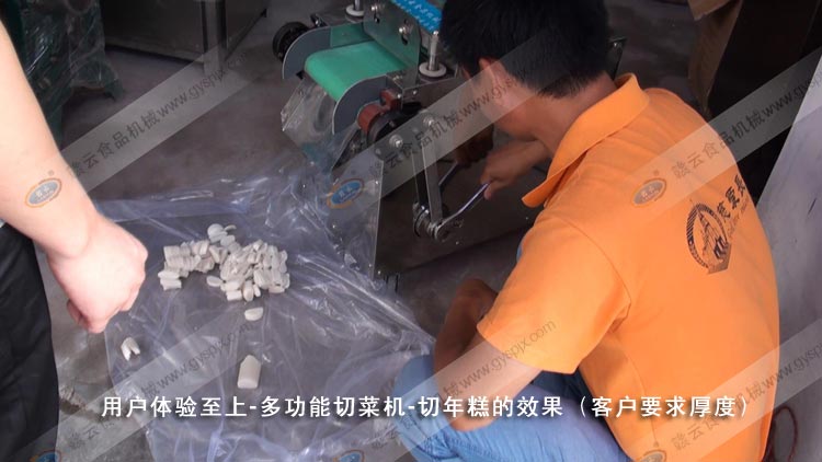 2012年6月27日上午,贛云接待了來自浙江溫州市王先生,體驗多功能切菜機(GY-QC-660)切年糕片的效果,試機過程,贛云技術(shù)人員演示了切菜機的走刀量的調(diào)整,王先生也親自掌握了走刀量調(diào)整操作技術(shù)要點,以下是試機過程實拍圖片: