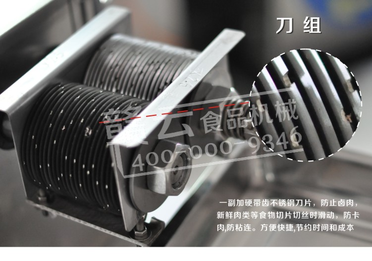 QR系列切肉機(jī)針對操作平臺安全性要求更高、衛(wèi)生清洗更方便、整體密封性更強(qiáng)、功能不單單局限于切肉,帶齒不銹鋼刀組相對運(yùn)動,防卡機(jī)、防打滑、防粘連,大大提高工作效率。