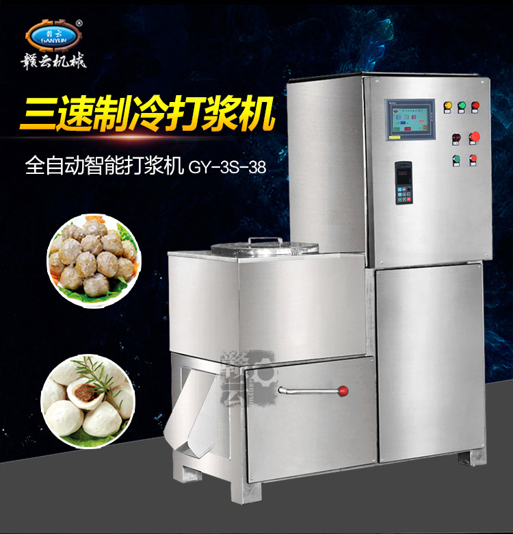 贛云2016推出38型新款三速制冷打漿機(jī),集低、中、高三種速度合一,配備對(duì)應(yīng)的三種刀組,結(jié)合高效的壓縮制冷系統(tǒng)、程序觸摸操控系統(tǒng)、打漿桶溫控感應(yīng)報(bào)警停機(jī)系統(tǒng),獨(dú)家設(shè)計(jì)閥門流水式出料,專為中小型肉丸加工廠和大型肉丸廠實(shí)驗(yàn)室打漿設(shè)備量身打造之用。適合各式肉丸制漿,是未來全能智能打漿典型代表作品。