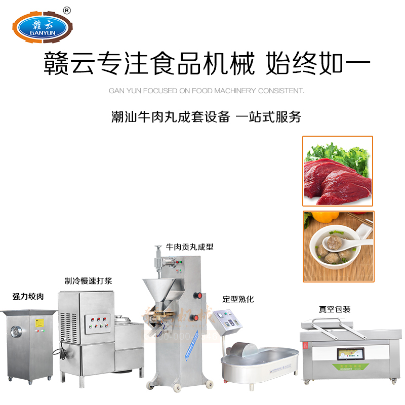 親愛的廣大客戶朋友們,你們好,今天為大家推薦一套制作高端牛肉丸的設(shè)備:潮汕牛肉丸配套設(shè)備,它由32型強(qiáng)力絞肉機(jī)、36型制冷慢速肉丸機(jī)、170型貢丸機(jī)、自動煮丸水槽和真空包裝設(shè)備六臺設(shè)備組合而成。一天8小時可產(chǎn)潮汕牛肉丸400公斤。