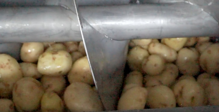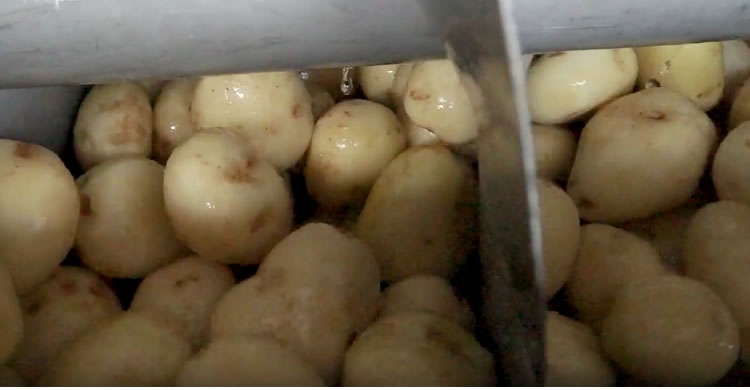 清洗干凈后,打開出料閥門,用塑料筐收集好去皮清洗的土豆。