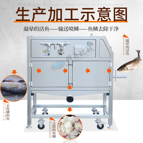經(jīng)過暫養(yǎng)后的鮮魚在進(jìn)入去麟這一環(huán)節(jié)需要用到這款高壓去魚麟設(shè)備,通過高壓水噴射的方法去除魚鱗,以達(dá)到不損傷魚頭和魚身,保障了食材的完整度。這臺(tái)設(shè)備操作簡(jiǎn)單,去麟干凈,且對(duì)魚體損傷小。