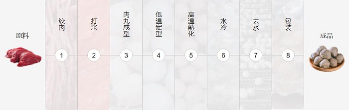肉丸加工流水線是將不同的肉料通過切割、打漿、成型、定型、熟化、冷卻、去水、包裝等肉丸加工生產(chǎn)自動(dòng)化設(shè)備的解決方案。