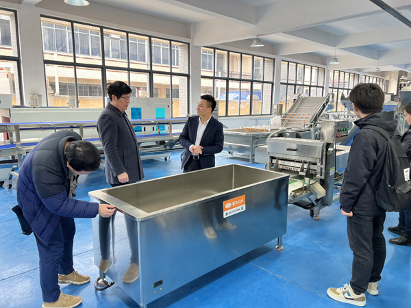 在張繼云董事長(zhǎng)的陪同下,吳所長(zhǎng)一行參觀了公司展廳,深入了解肉類自動(dòng)化加工設(shè)備、果蔬高效處理生產(chǎn)線等核心產(chǎn)品的功能與應(yīng)用場(chǎng)景。重點(diǎn)介紹了設(shè)備在降低人力成本、提升加工效率方面的創(chuàng)新設(shè)計(jì)。