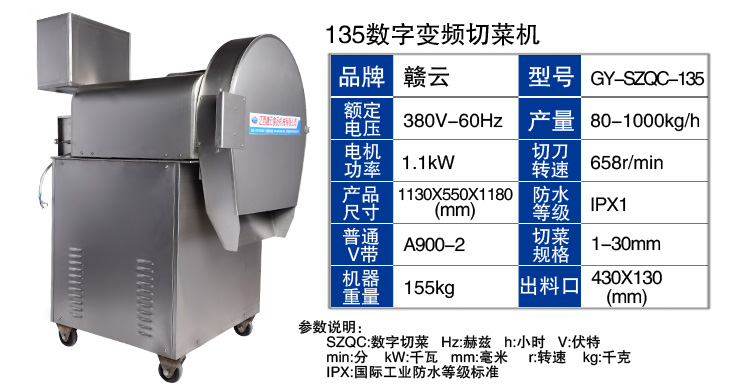 贛云機械生產(chǎn)的135型數(shù)字變頻切菜機適用于莖葉類軟菜(芹菜、韭菜、軟豆,菠菜,綠葉蔬菜如莖段),和細長的硬蔬菜(黃瓜,胡蘿卜,等)是制作面食加工行業(yè)的理想設(shè)備餐飲業(yè).