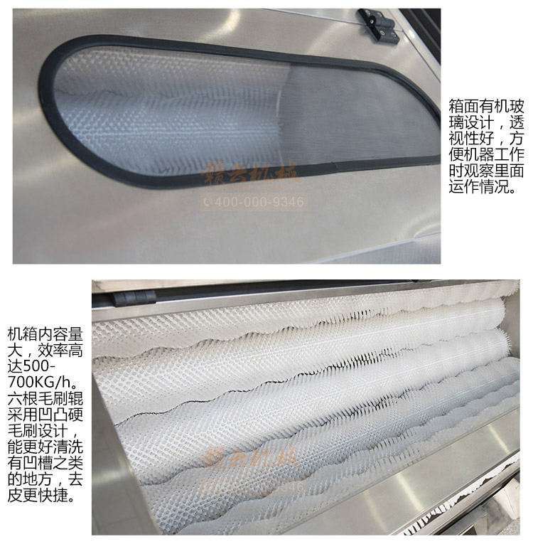 本設(shè)備主要采用304#不銹鋼制作(電機(jī)減速機(jī)、電器元件、軸承、毛輥刷等特殊部件除外),符合食品加工衛(wèi)生要求,,整機(jī)操作簡便、便于操作,具有工作平穩(wěn)可靠、噪音低、工作效率高等特點(diǎn)。