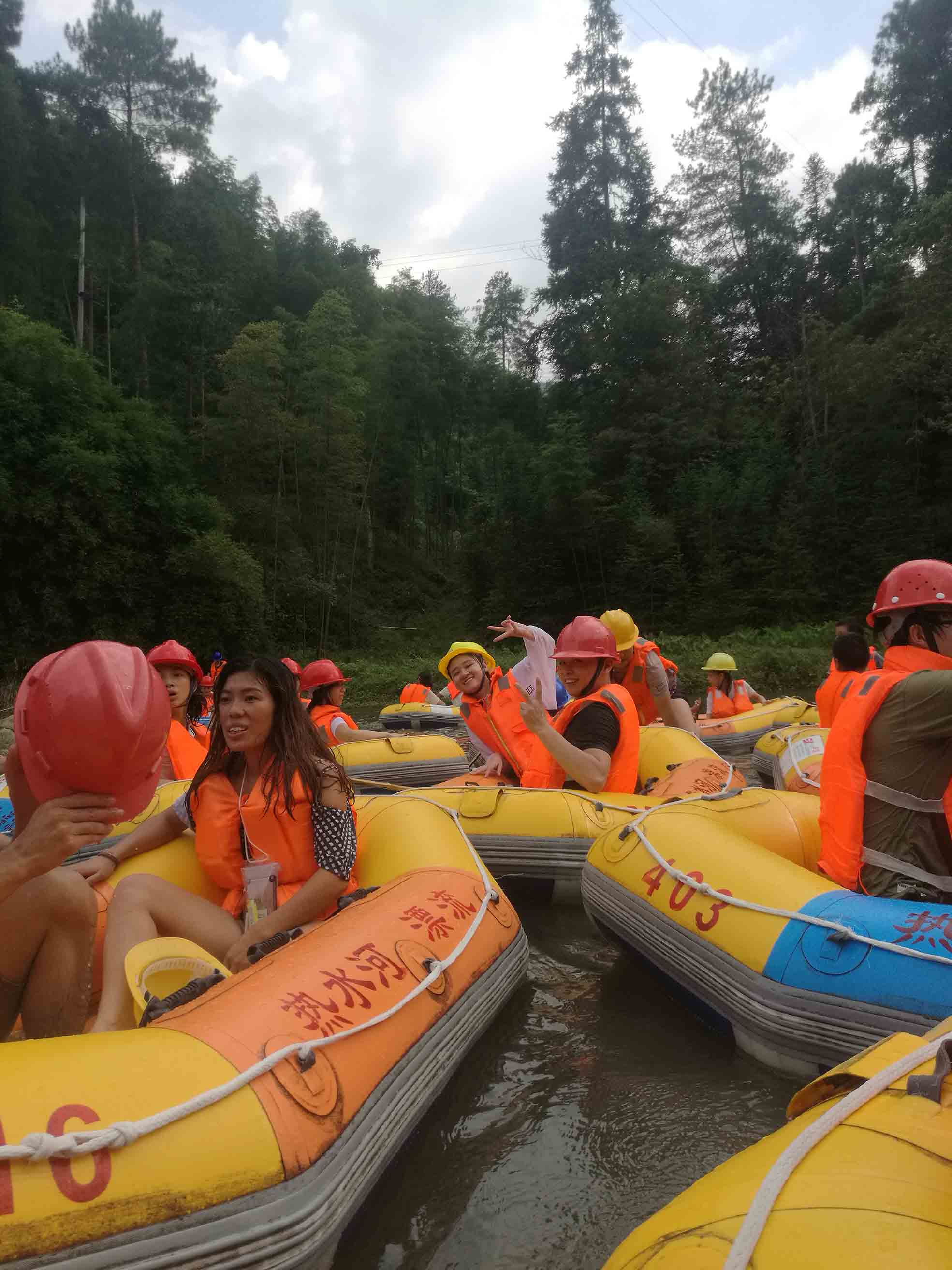 中午,大家集合聚餐。在農(nóng)家的院子里,體驗(yàn)鄉(xiāng)村的生活,大家互相交流情感。吃了農(nóng)家菜之后,便開始走上了漂流之旅,此次漂流的地點(diǎn)是在湖南汝城熱水河漂流,兩岸青山依依,竹海呢喃,自然形成的青石河,小橋、古樹、田野、村莊,無限風(fēng)光。大家駕駛著雙人座特制橡皮艇,穿峽谷、越險(xiǎn)灘,時(shí)兒急流激蕩,時(shí)兒緩流輕越,迎面而來的是一種其樂無窮的驚、險(xiǎn)、奇。在比較平緩的水灘上大家在享受優(yōu)美自然景色,打水仗等,同時(shí),也不忘留影紀(jì)念,這次旅游不但營(yíng)造了和諧融洽的集體氣氛,而且增進(jìn)了彼此的情感。
