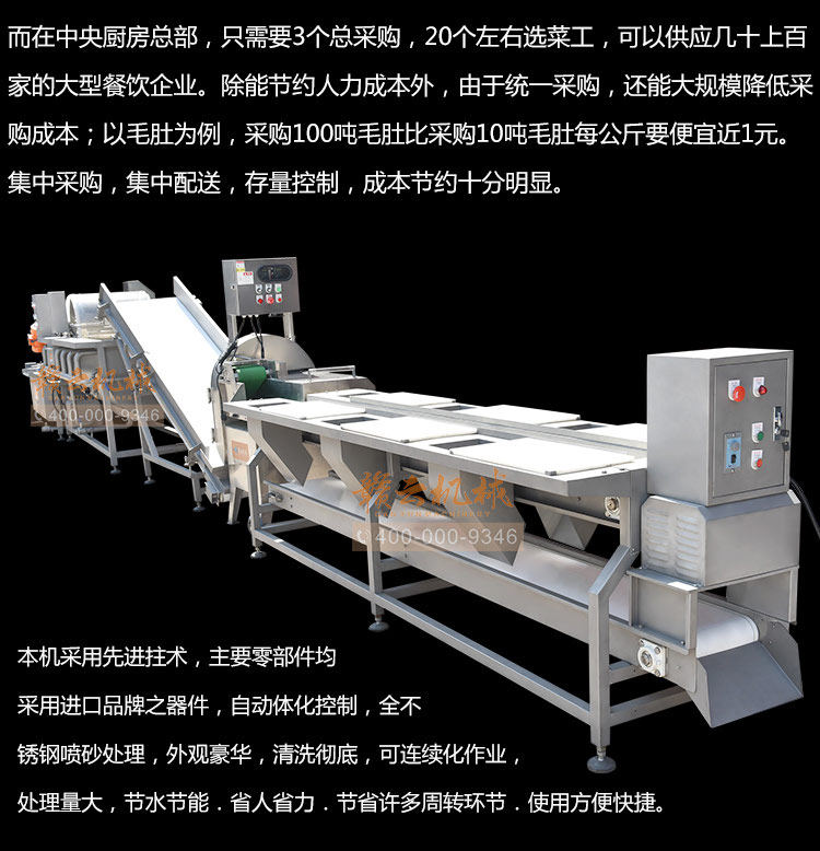 “無刀化”管理廚房設(shè)備切洗配生產(chǎn)線主要從蔬菜清洗,切割,分配等環(huán)節(jié),以及肉類加工設(shè)備等,使用設(shè)備從安全角度考慮優(yōu)先選擇設(shè)備。