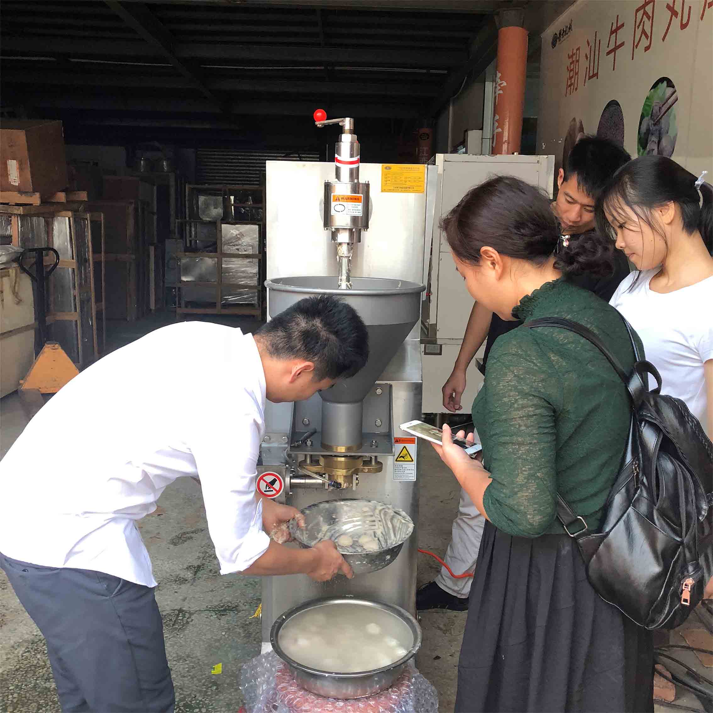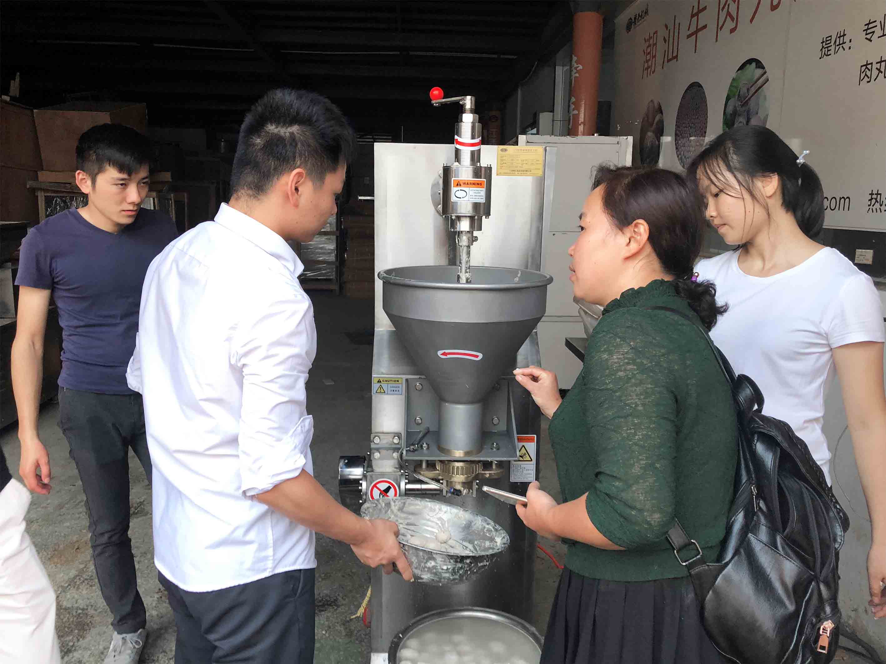 就在昨天,湖北的客戶聞名遠(yuǎn)道而來(lái),帶著自家的肉丸配方,試用贛云的28型傳動(dòng)式打漿機(jī)和170貢丸成型機(jī)兩款機(jī)器后,客戶表示,贛云牌28型傳動(dòng)打漿機(jī),打出來(lái)的漿體細(xì)膩,嫩化,更主要的是這款機(jī)器可以外圈可以加冰制冷,這樣可以保證肉丸的口感。170貢丸機(jī)成型圓度統(tǒng)一,成型速度相對(duì)其他機(jī)器比較快,材質(zhì)厚實(shí)。適合客戶自家品牌丸子的要求。客戶試機(jī)的當(dāng)天下午就付了兩臺(tái)機(jī)器的全款。