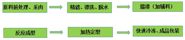 成型操作要與斬拌操作連接進行,兩者之間不能長時間間隔,否則打漿后的魚糜在室溫下放置會因凝膠化現(xiàn)象而失去粘性和塑性而無法成型。成型溫度一般在50℃左右反應(yīng)10min。